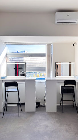 Samostatná zóna propojená s administrativní místností studia. Je určena pro přípravu modelek a klientů před focením nebo natáčením.